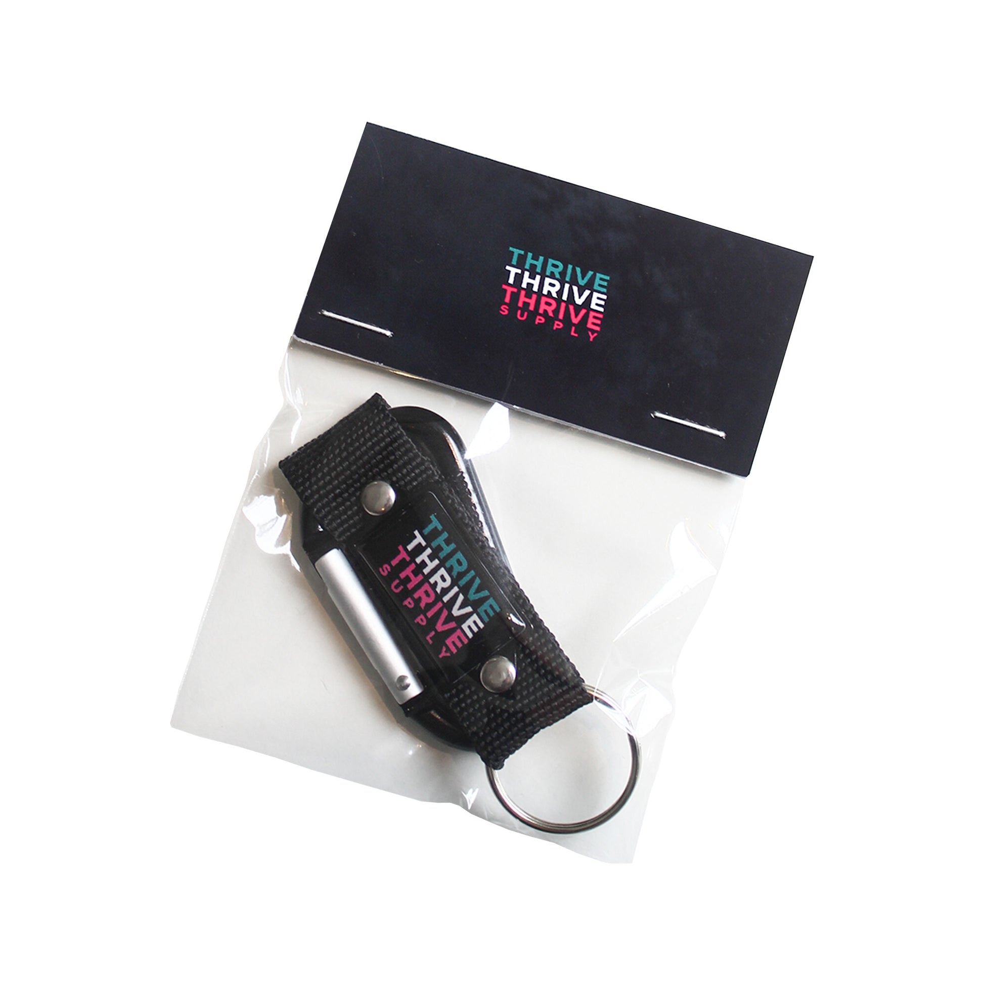 Simple, durable, and an everyday essential. This keychain features a woven polyester strap, a secure carabiner clip, and a metal branding plate. Whether it’s clipped to your belt loop or bag, it keeps your keys locked in and ready to go.